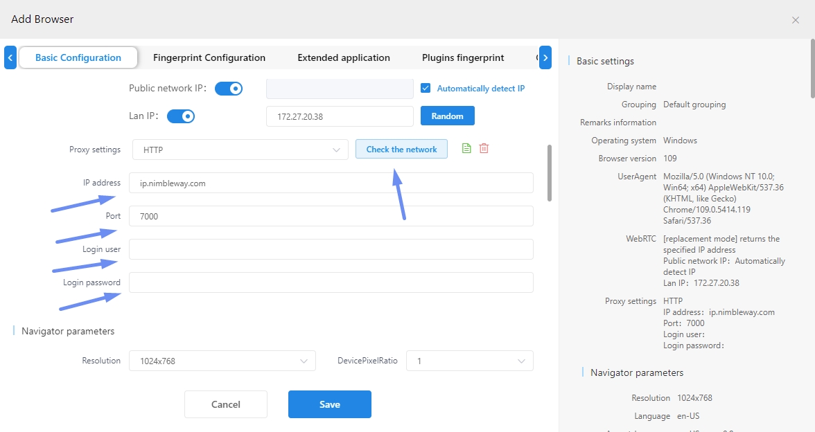 Test the proxy to ensure it's working correctly by clicking “Check the network”.