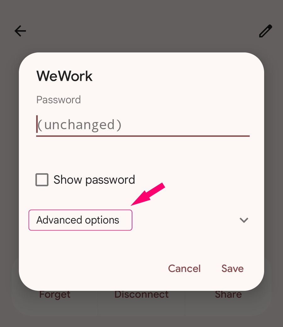3. Click on the pencil at the top right to edit the network’s settings, and then on “Advanced options”.