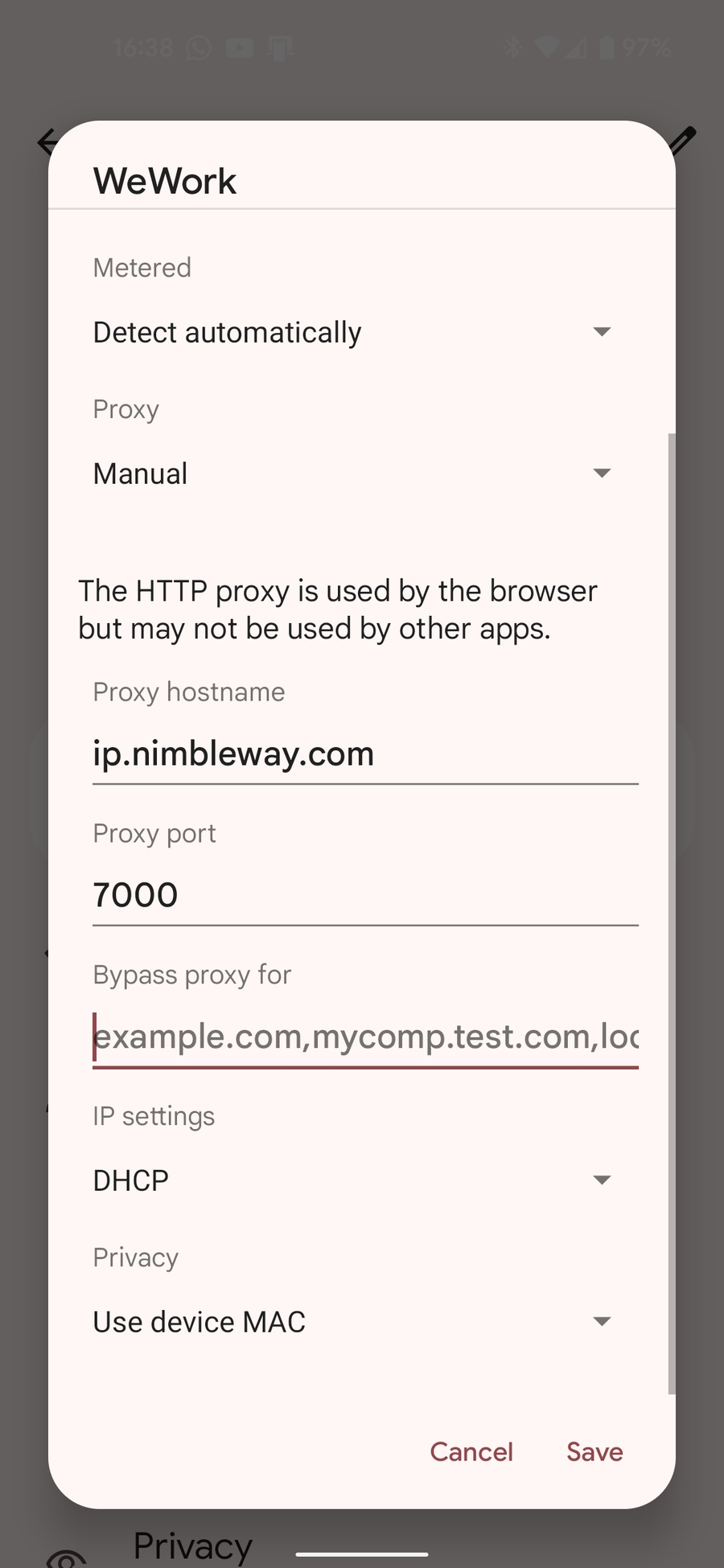 Congratulations! You’ve connected your Android device, and requests will now be routed through Nimble IP.